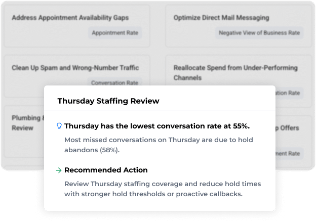Highlights patterns and anomalies impacting performance with targeted, data-driven recommendations so teams can act with confidence.